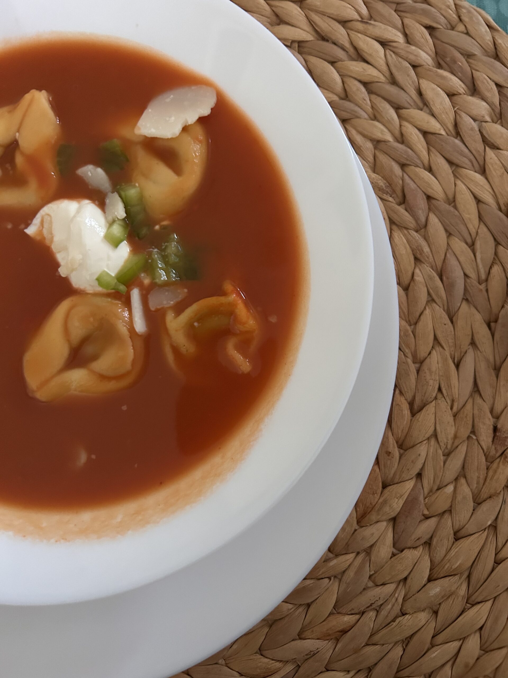 Montag ist Suppentag: heute schnelle Tomaten – Gemüsesuppe mit Tortellini aus dem Kühlregel