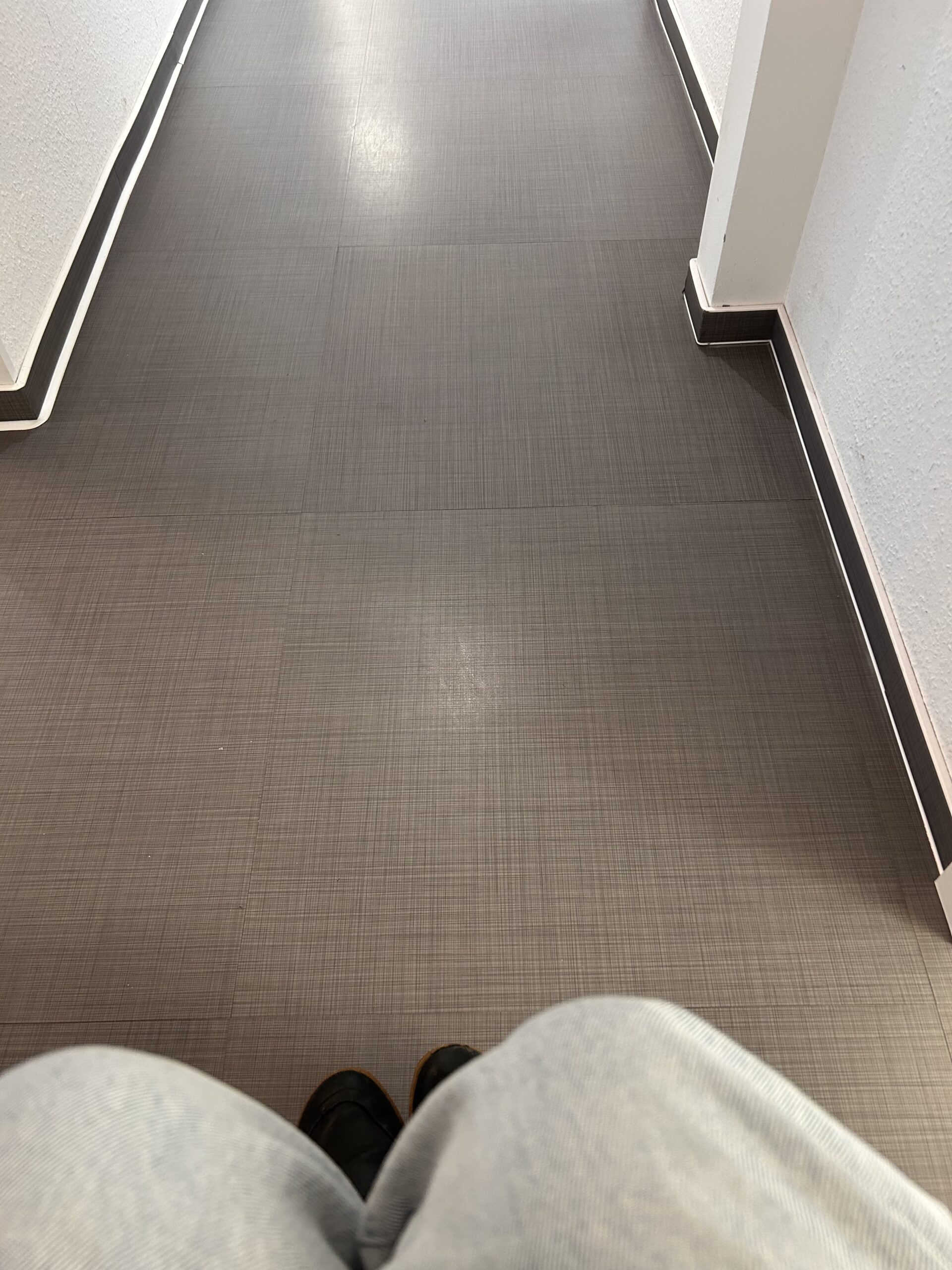 Es hat geklappt, ich bin in der Praxis. Das Wartezimmer ist voll, ich darf im Flur warten. Passgenau.