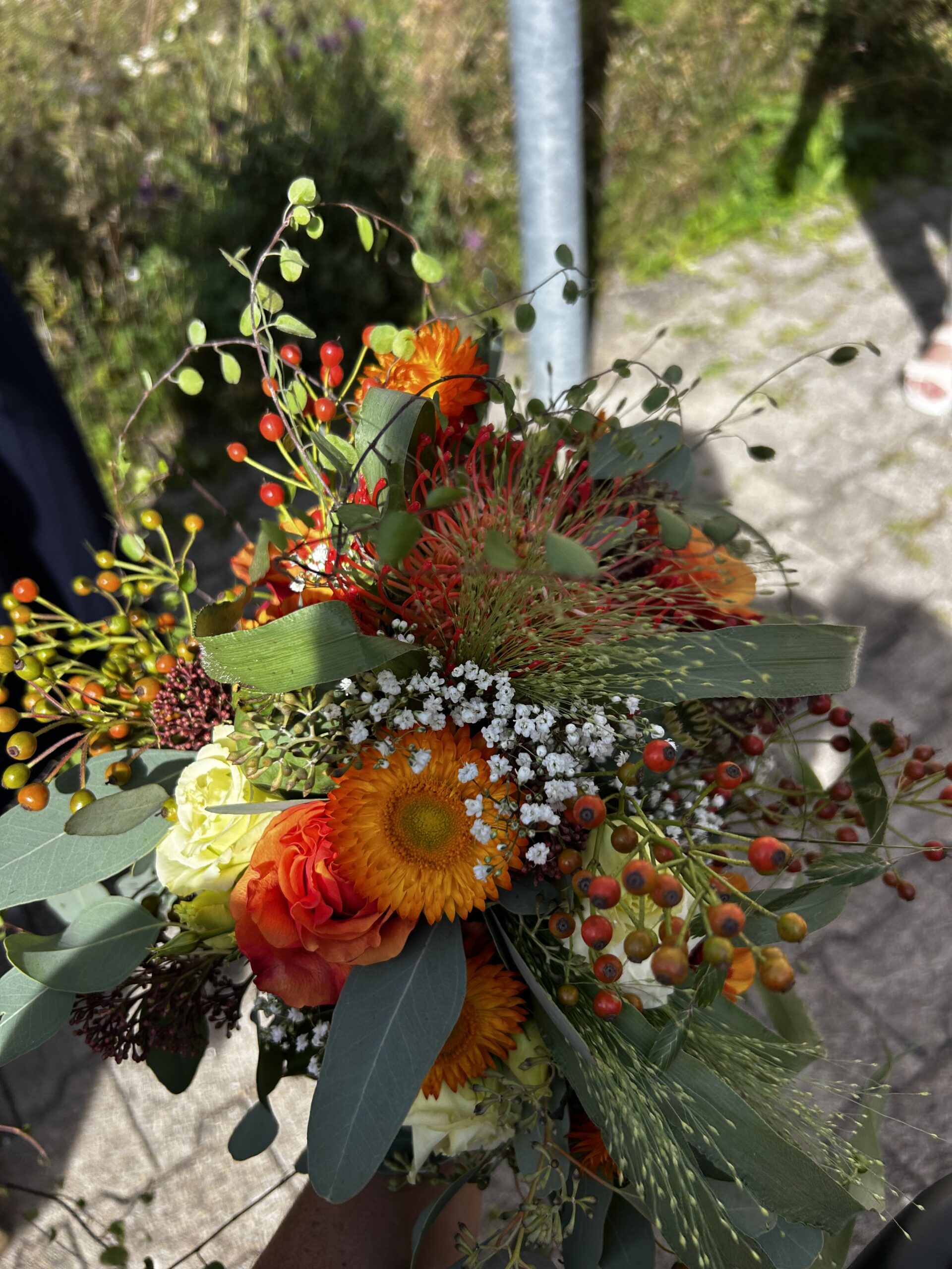Zwei Tage nach der Hochzeit gab es einen Temperatursturz, Regen, Herbststürme und damit einen Schub bei mir mit Spastiken und einer gravierenden Verschlechterung. Es war still bei wheelymum – weil alle Kraft zum aushalten gebraucht wurde. Eine Woche lang ging gar nichts. Und wenn ich gar nichts schreibe dann meine ich das so. Ich schreibe das nicht weil ich Mitleid möchte, sondern um mir das selbst auch klar zu machen. Ich lag im dunklen Zimmer. Die Jungs kamen zu mir, nicht ich zu ihnen. Lesen war nicht möglich. Alles hat unsagbar viel Zeit gebraucht und gleichzeitig waren die Tage unsagbar lang. Nach 7 Tagen traten die ersten Besserungen ein. Mir war klar, dass ich nach der Hochzeit nicht fit sein werde – die Löffel sind einfach aufgebraucht. Und doch hat mir der Schub einfach alles unter den Füßen weggezogen. In den letzten Jahren durfte – und musste ich lernen, diesen gut auszuhalten. Denn wenn ich zu früh wieder denke, es muss jetzt aber gehen, büße ich das den ganzen Herbst und Winter über. Natürlich muss ich hier nicht alleine durch. Ärzte, Therapeuten und meine Familie, die in diesen Phasen besonders zurückstecken muss, sind bei mir. Das gibt mir Kraft und gleichzeitig belastet es mich, weil ich nicht möchte, dass meine Kinder unter mir und meiner Erkrankung leiden. Dazu schreibe ich aber an einem Tag etwas, das würde hier den Rahmen sprengen. So haben sie mir den Herbst nach Hause gebracht und ich habe mich so sehr darüber gefreut. Ich glaube er ist meine Lieblingsjahreszeit – auch wenn es die Jahreszeit mit dem meisten Veränderungen in jedem Jahr ist.