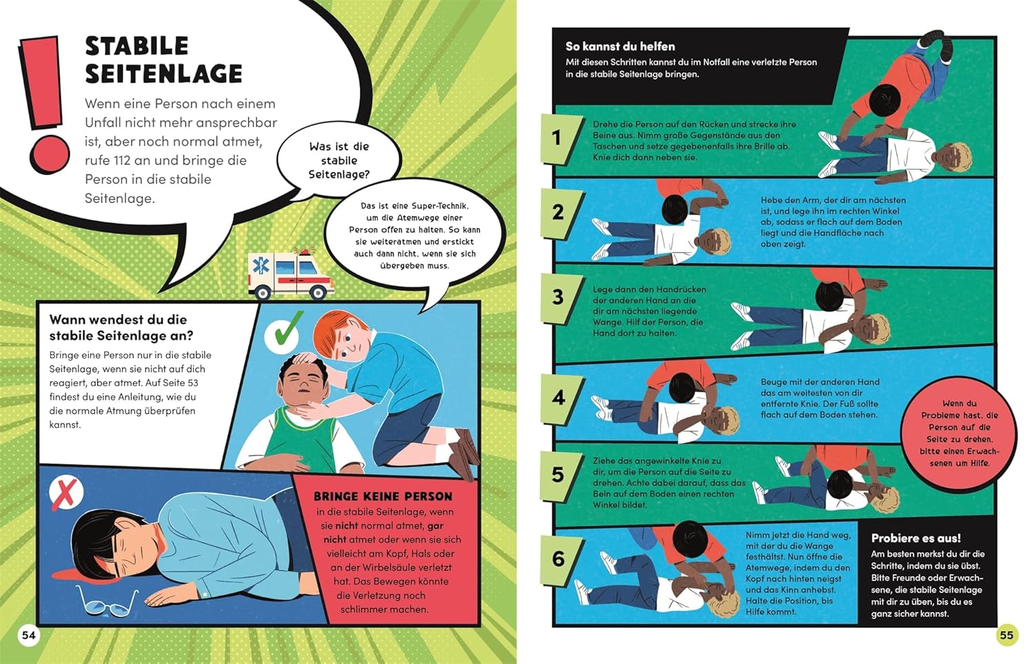 Darunter sind Blutungen, Verbrennungen, Knochenbrüchen, Kopfverletzungen uns vieles mehr erklärt Jedes Thema umfasst mindestens eine Doppelseite.