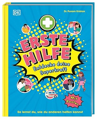 Erste Hilfe ist wichtig und es gibt kein richtiges Alter. Genau aus diesem Grund feiere ich das Buch: Erste Hilfe für Kinder – entdecke deine Superkraft (Link zum Partnerprogramm), aus dem DK Verlag so sehr. Das Erste-Hilfe-Kinderbuch zeigt Grundschulkindern ab 7 Jahren, wie sie im Notfall sicher reagieren können. Im Stil von Superhelden-Comics werden zunächst die Grundlagen erklärt.